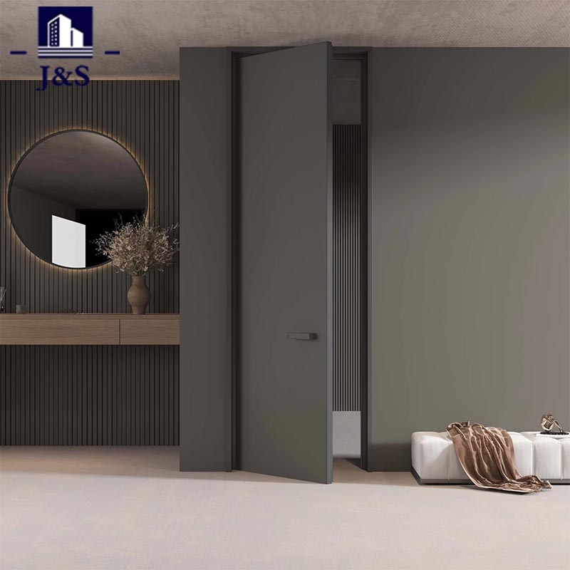 Cette porte intérieure cachée est un produit composite aluminium-bois de qualité supérieure, fabriqué à partir d'un cadre en aluminium robuste associé à des lattes en bois de haute qualité, incarnant un design personnalisé sophistiqué pour toute la maison. La structure en aluminium assure une stabilité et une durabilité exceptionnelles, résistant à la déformation au fil du temps, tandis que les lattes en bois naturel ajoutent une texture chaleureuse et tactile qui adoucit l'ambiance industrielle moderne. Parfaitement intégrée au mur, la porte élimine les cadres visibles, créant un flux visuel propre et ininterrompu qui s'aligne parfaitement avec l'esthétique minimaliste préférée des jeunes propriétaires. L'élégante poignée de porte rectangulaire et la charnière robuste dissimulée mettent en valeur un savoir-faire méticuleux, la charnière étant intégrée dans la structure pour un fonctionnement fluide et silencieux. Cette fusion de la résistance de l’aluminium et de la chaleur du bois donne lieu à une solution durable et élégante, idéale pour les espaces de vie modernes, ce qui en fait un choix de premier ordre pour ceux qui apprécient la qualité des matériaux, un design minimaliste et un environnement domestique cohérent et sans encombrement.