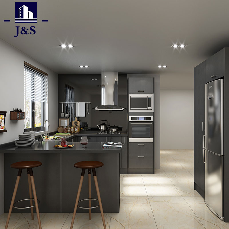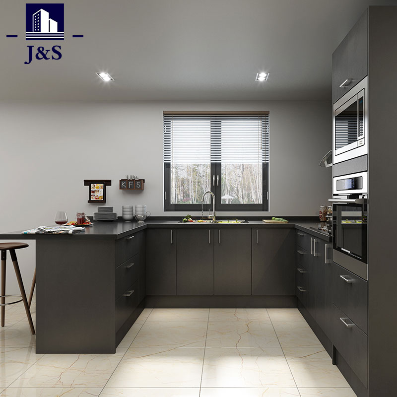 Nous fournissons des armoires de cuisine modernes en laque noire. Il s'agit d'une conception de cuisine sans poignée avec une finition laquée PE et PU, qui fonctionne parfaitement en matière d'imperméabilisation et de protection contre les rayures.
