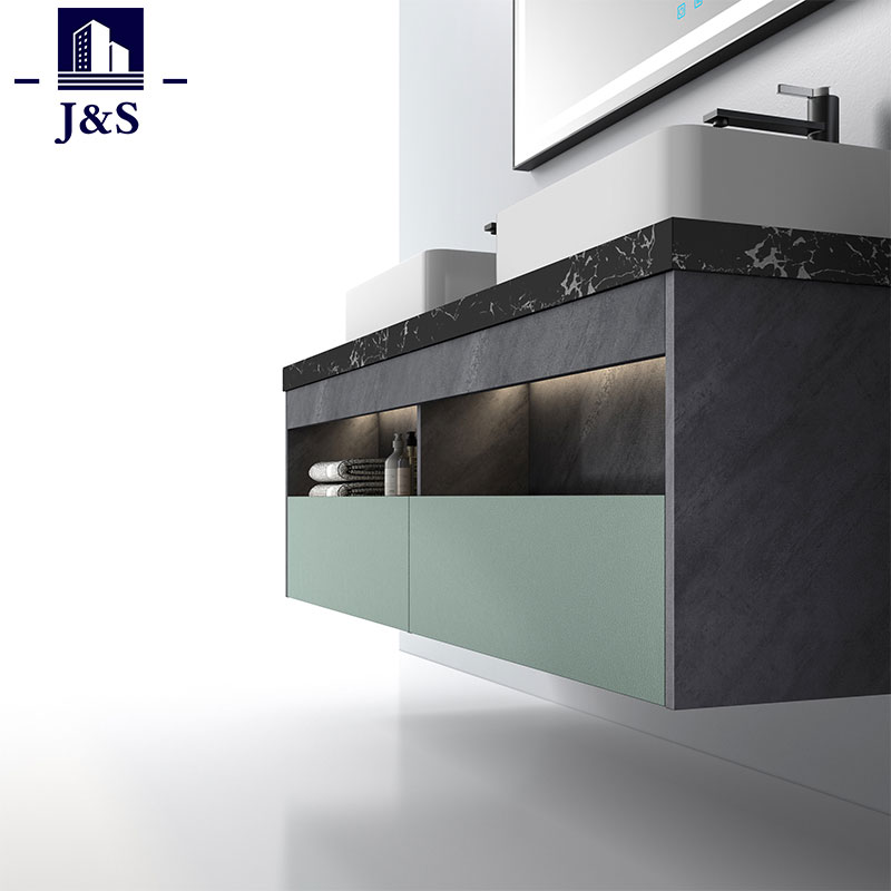 ✔Le matériel de vanité de salle de bain utilise des glissières de tiroir de la meilleure marque chinoise et des charnières à fermeture en douceur Blum ;